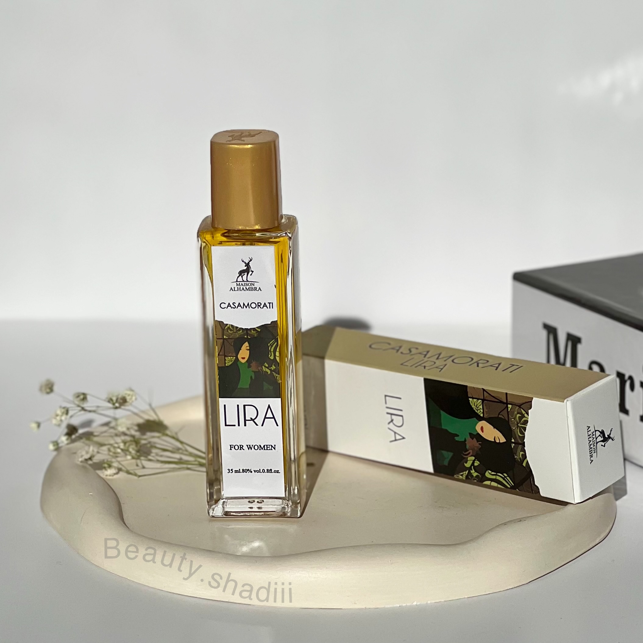 عطر ادکلن کازاموراتی زرجف-زرژاف لیرا-Xerjoff Casamorati Lira از برند قدیمی سلطنتی و سرشناس و مطرح کاساموراتی زرژاف در سال 2011 با عنوان عطری گلی شرقی، پای به عرصهی محصولات عطر و ادکلن در جهان نهاد. نت ابتدایی رایحهی این محصول از عناصری همچون اسطوخودوس، پرتقال خونی و ترنج تشکیل شدهه است و در نت میانی و در قلب این رایحه شاهد حضور عناصری همچون دارچین، گل یاس و شیرین بیان خواهیم بود و اما در نت اصلی و در پایه این عطر از عناصریی همچون وانیل، مشک و کارامل بهره برده که با توجه به حضور پر رنگ کارامل پایهی اصلی رایحهی این عطر بر مبنای حضور پر قدرت آن طراحی شده است. با توجه به رایحهی گرم و شیرین این محصول از آن میتوان در چهار فصل سال و در درازای شبانه روز استفادهی مدام داشت. سیلیج رایحهی عطر ادکلن زنانه کازاموراتی زرژاف لیره سنگین و ماندگاری آن بسیار طولانی مدت میباشد. ایو راچر طراح این عطر آن را به گونهای طراحی کرده که 99% آنرا همپایه با قیمت بالایش دانسته و آن را شاهکاری ابدی توصیف کردهاند. عطری که در ابتدا با شیرینی دلچسب و خوشمزهی وانیل کار خود را آغاز کرده و با شدت به سمت ملایمت رایحهی گلها رفته و کم کم ماندگاری بیشتری به خود میگیرد.