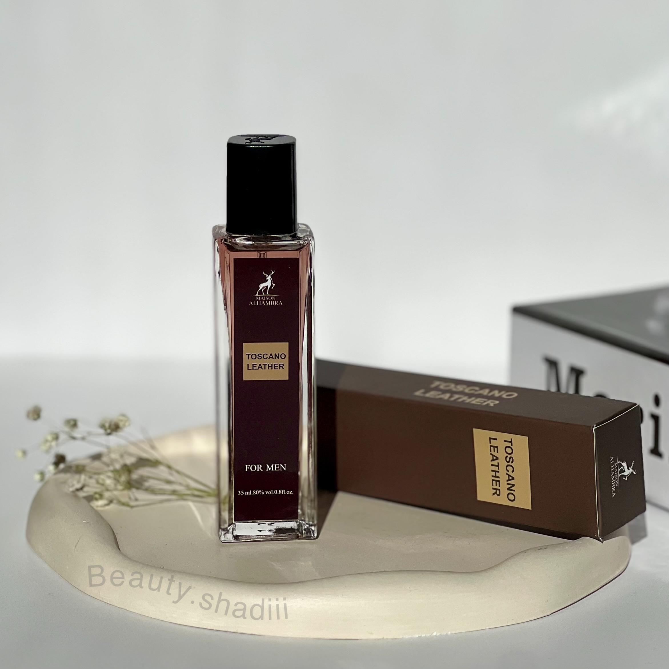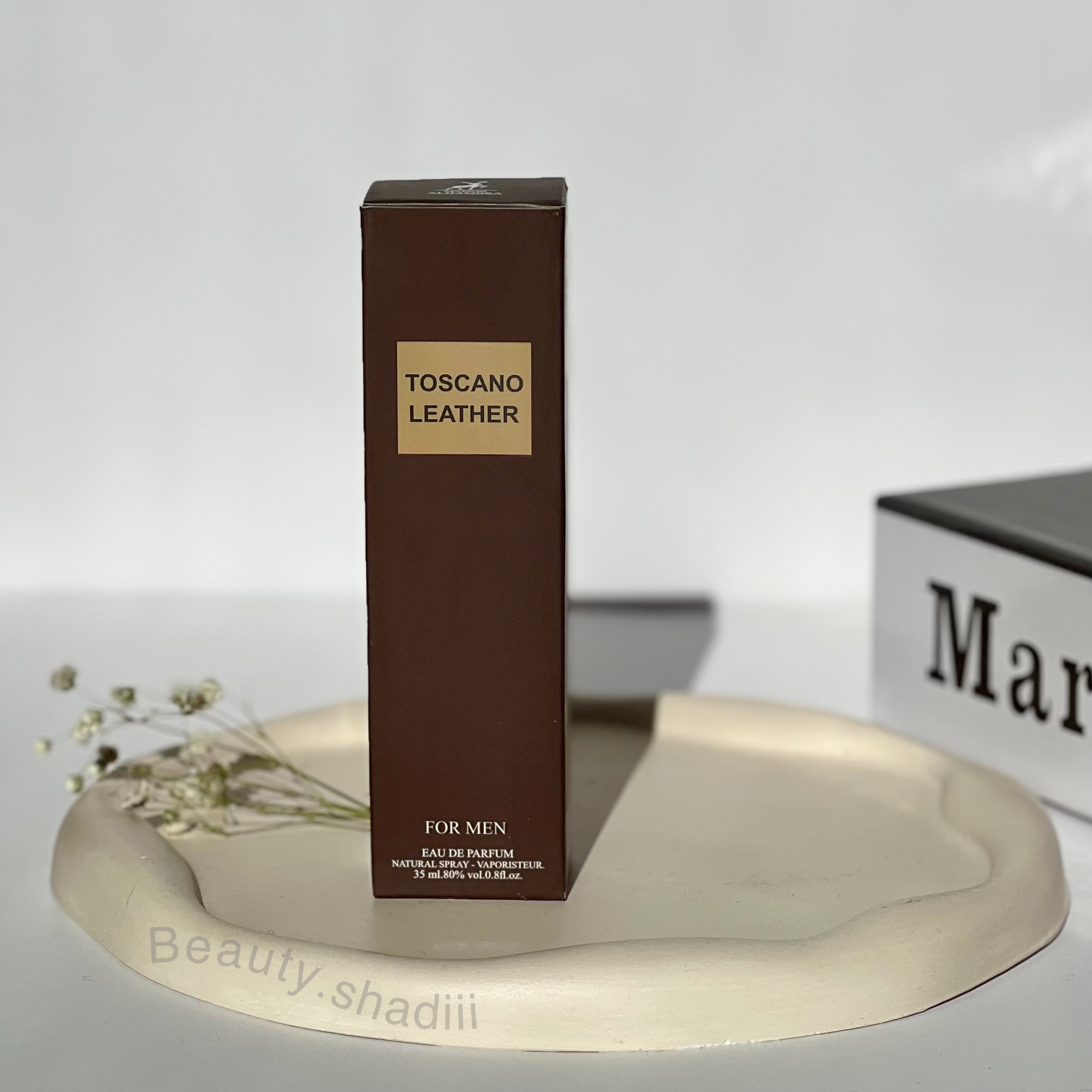 برند «Tom Ford» در سال 2007 و پس از جدا شدن طراح مد آمریکایی، «تام فورد»، از شرکت «گوچی» متولد شد. در همان سال اولین سری عطرهای این شرکت که شامل 12 عنوان بود، با نام «Private Blend Collection» به بازار عرضه شد. عطر زنانه و مردانه «Tom Ford Tuscan Leather» یکی از عطرهای این سری است. شیشهی این تام فورد به رنگ تیره و بوده و شکل کلاسیک و سادهی آن، از اصالت در طراحی تام فورد حکایت دارد. روی پلاک طلایی رنگی که روی سینهی عطر قرار گرفته، نام TOM FORD و مدل TUSCAN LEATHER بهخوبی دیده میشود. در بطری با شکل چتر مانند و زیبای خود بهخوبی این مجموعهی یکدست را تکمیل میکند.