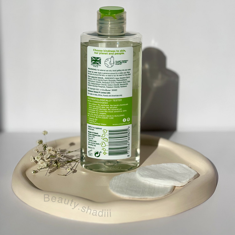 میسلار واتر Kind To Skin سیمپل، مناسب برای انواع پوست است. یک پاک کننده ملایم برای از بین بردن موثر آرایش و آلودگی ها قبل از شستشوی صورت است.