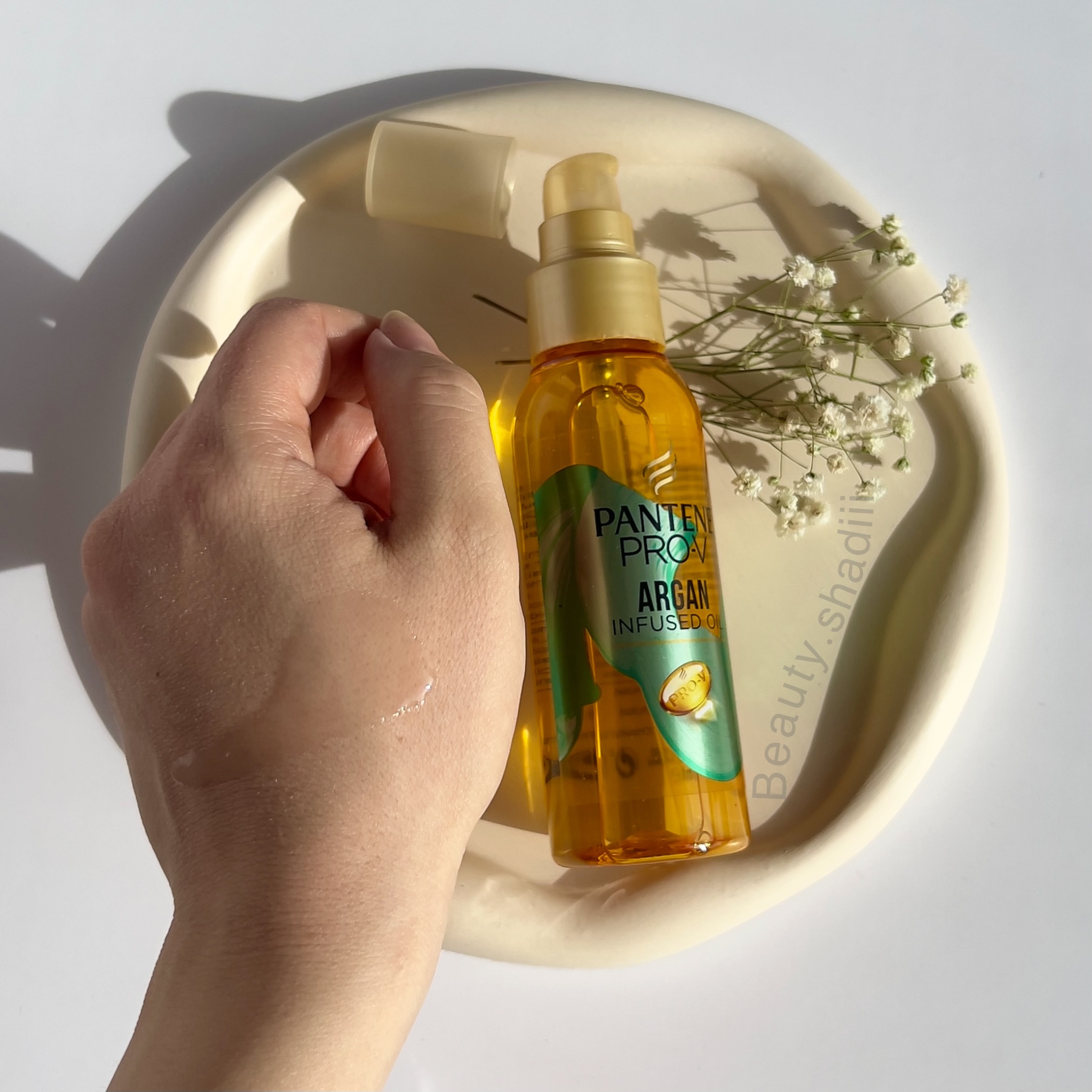 روغن آرگان پنتن حاوی Pantene Pro-V یک محصول مراقبت از ساقه مو است که فقط با چند قطره می تواند به طور معجزه آسایی موهای شما را آبرسانی کرده و تارهای مو را احیا کند. فرمول منحصر به روغن ارگان پنتن که سرشار از مواد موثر، به ویژه ترکیب مغذی Pro-V است موها را از درون قوی و سالم می کند به طوری که موهای خشک و آسیب دیده را جانی دوباره می بخشد. روغن مو آرگان پنتن یک روغن با ارزش از ترکیب روغن آرگان ارگانیک با مواد مغذی Pro-V و ویتامین E می باشد که تار به تار موها را عمیقا تغذیه کرده و خیلی سریع آنها را نرم می کند، درخشندگی طبیعی به آن ها می دهد.